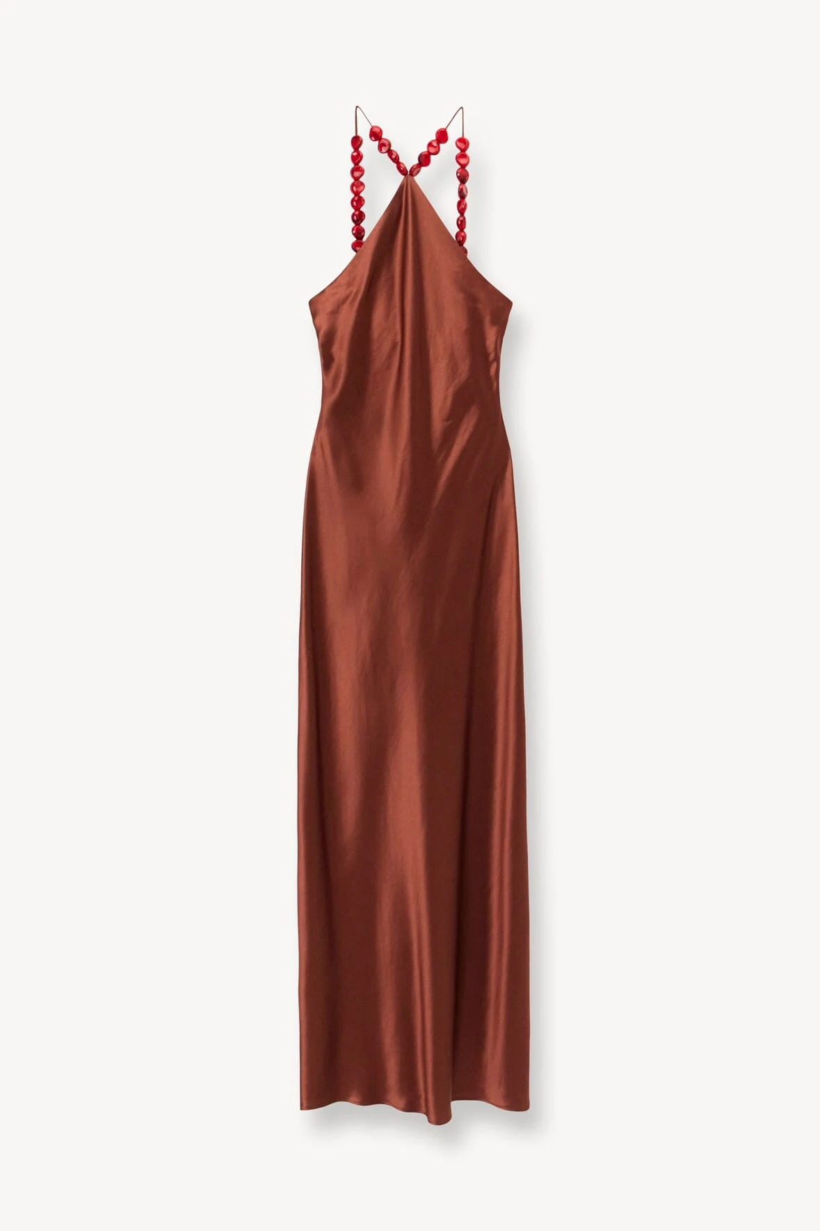 The Cadence Dress is a new slip dress silhouette for Summer, featuring a halter neckline with beaded straps. The dress is crafted in satin and has a hidden back zipper.