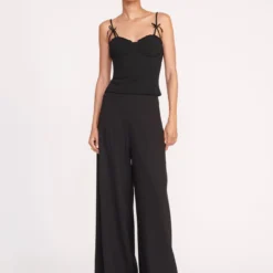 Our signature pant updated in a satin fabric with a silver lamé finish. The Luisa is a wide leg pleated trouser with hook and zip closure.Â