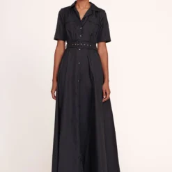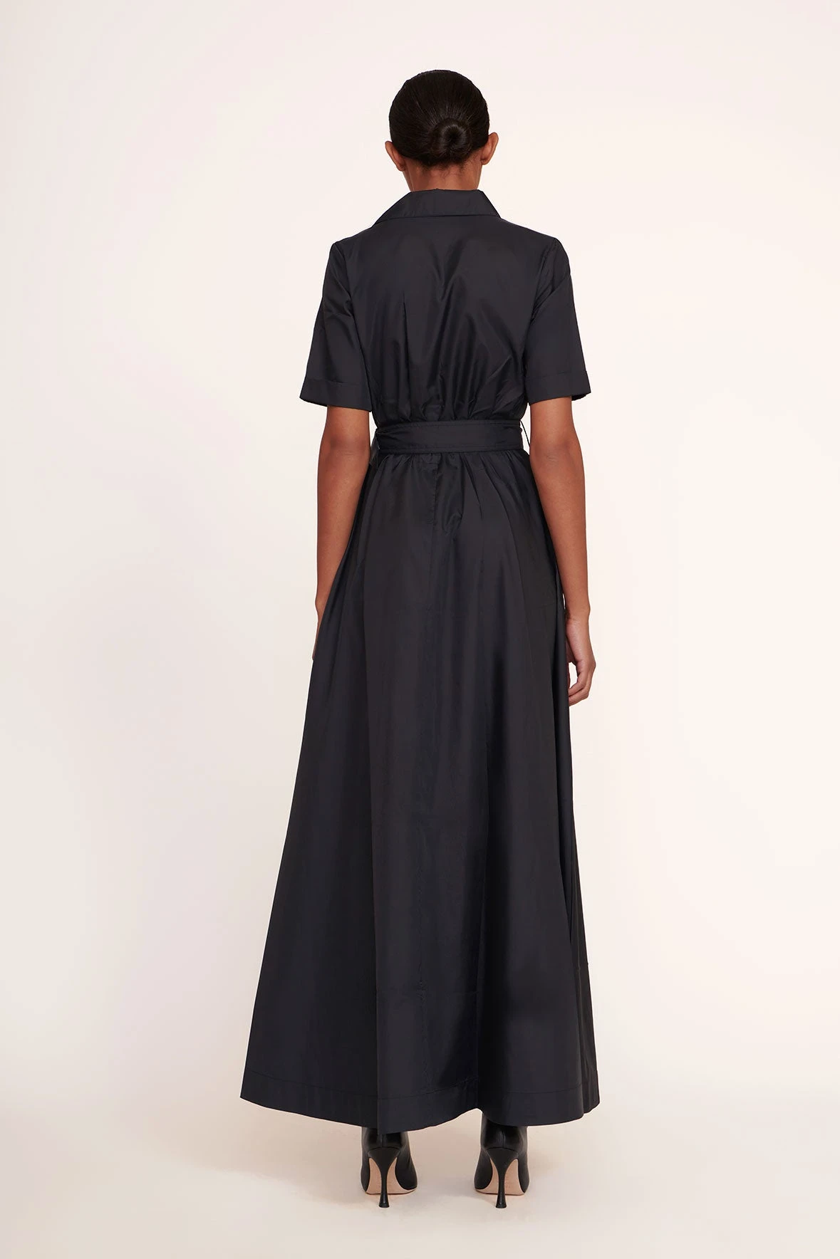 The Millie is a full length dress made out of our sustainable recycled tissue nylon. This dress features two front pockets, a button down front and matching belt.