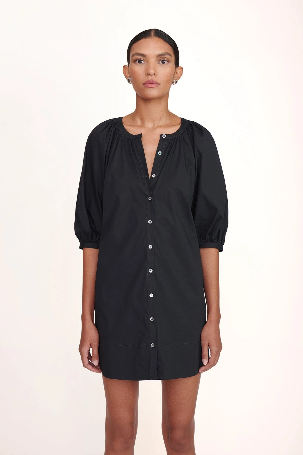 A mini version of our classic button down dress. The Mini Vincent features small balloon sleeves and is constructed out of a cotton poplin fabric.Â