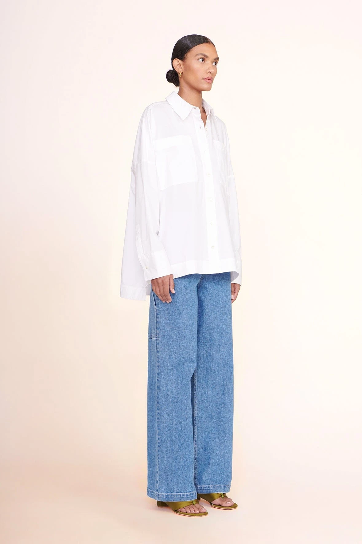 An oversized collared shirt, the Payton Top features patch pockets and is made out of a cotton poplin fabric.